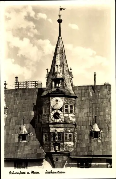 Ak Ochsenfurt am Main Unterfranken, Rathausturm
