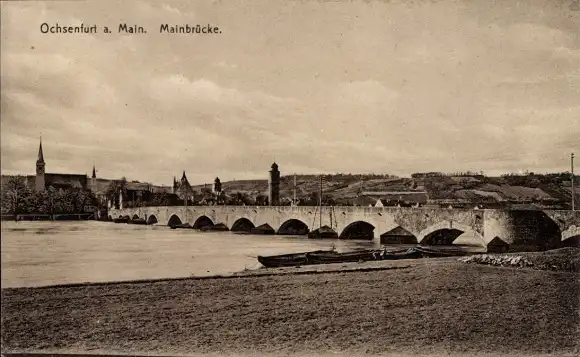 Ak Ochsenfurt in Unterfranken, Teilansicht mit Mainbrücke