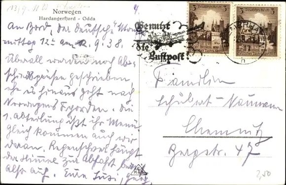 Zustand, siehe Scan, gelaufen, 1938 - ca 14 cm X 9 cm