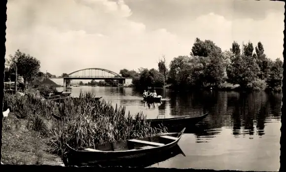 Ansichtskarte, Postkarte, Ruderer, Ruderboote, Ruderboot, Brücke, Brücken