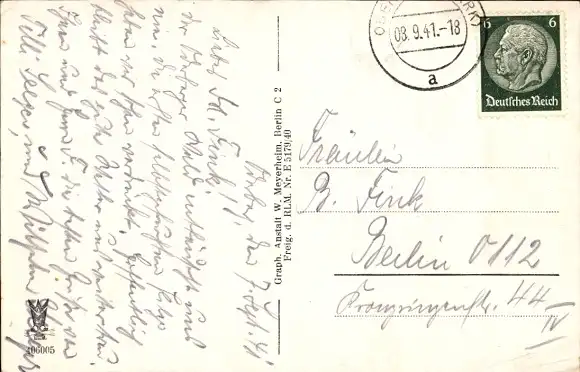Zustand, siehe Scan, gelaufen, 1941 - ca 14 cm X 9 cm