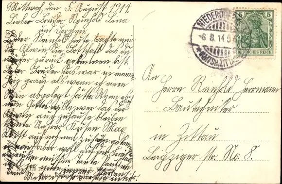 Zustand, siehe Scan, gelaufen, 1914 - ca 14 cm X 9 cm