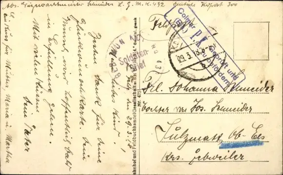 Zustand, siehe Scan, gelaufen, 1918 - ca 14 cm X 9 cm