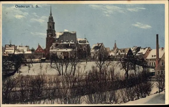 Ak Oederan Sachsen, Blick auf den Ort mit Kirche im Winter