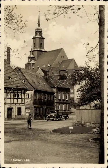 Ak Oederan Sachsen, Dorfpartie mit Kirche