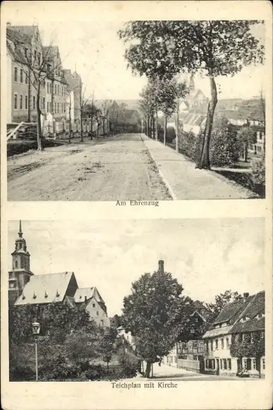 Ak Oederan in Sachsen, Ehrenzug, Teichplan, Kirche