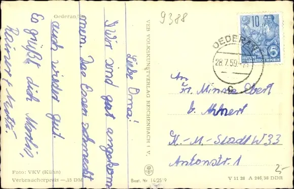 Zustand, siehe Scan, gelaufen, 1959 - ca 14 cm X 9 cm
