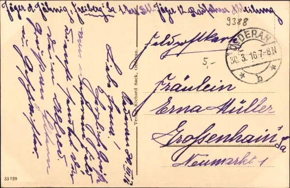 Zustand, siehe Scan, gelaufen, 1916 - ca 14 cm X 9 cm