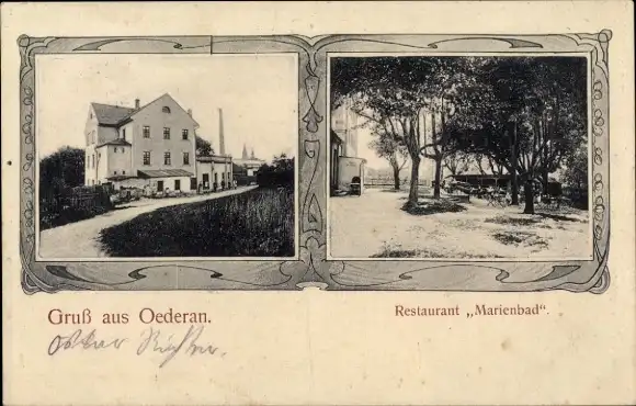 Ak Oederan in Sachsen, Restaurant Marienbad, Gartenansicht