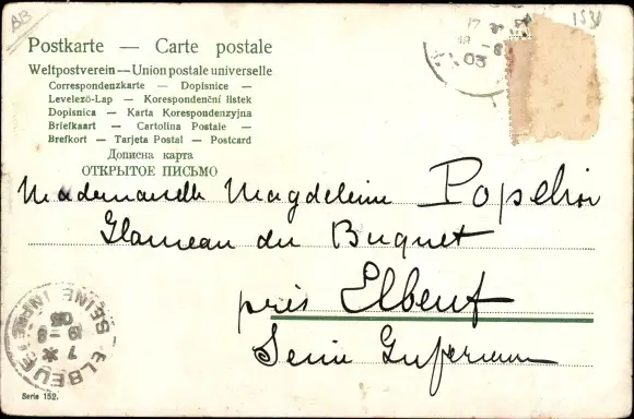 Zustand, siehe Scan, gelaufen, 1903 - ca 14 cm X 9 cm