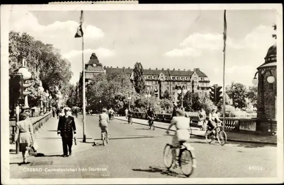 Ak Örebro Schweden, Centralpalatset fran Storbron