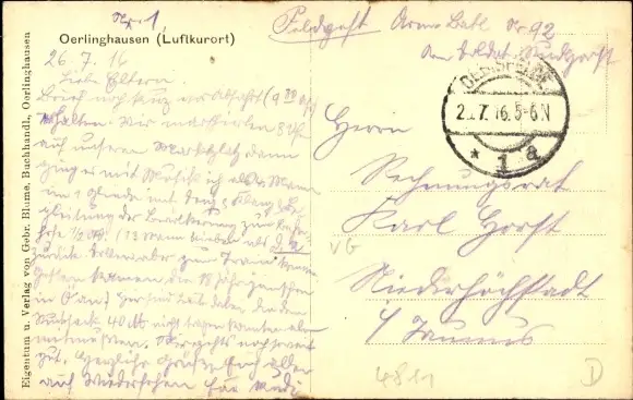 Zustand, siehe Scan, gelaufen, 1916 - ca 14 cm X 9 cm