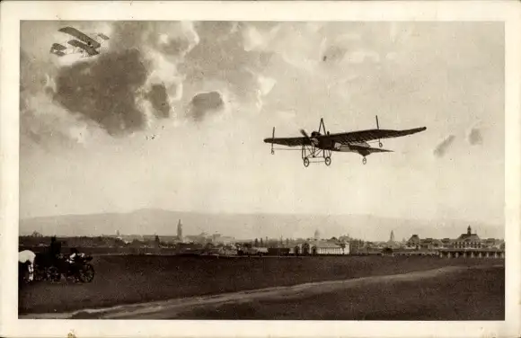 Ak Österreichisches Militärflugzeug, Aufklärer Taube über Flugfeld Wiener Neustadt