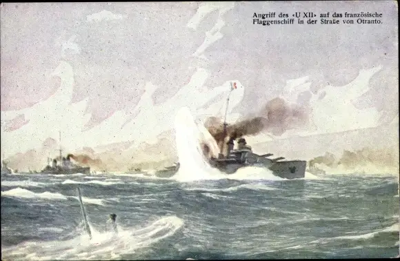 Ak Österreichisches U Boot U XII greift französisches Kriegsschiff an, Stra0e von Otranto