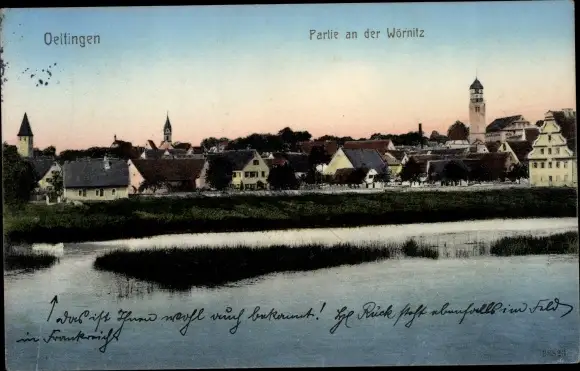 Ak Oettingen in Bayern, Partie an der Wörnitz