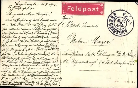 Zustand, siehe Scan, gelaufen, 1915 - ca 14 cm X 9 cm