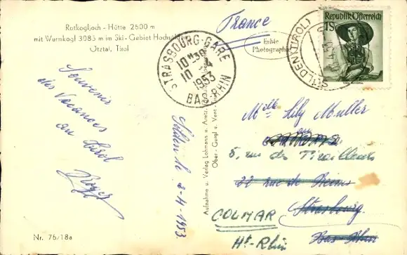 Zustand, siehe Scan, gelaufen, 1953 - ca 14 cm X 9 cm