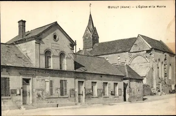 Ak Oeuilly Aisne, Die Kirche und die Schule