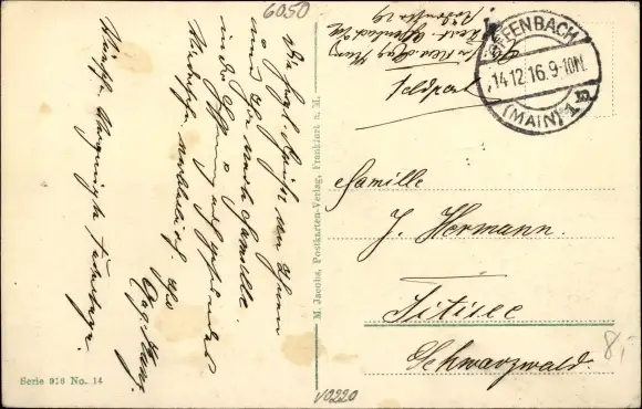 Zustand, siehe Scan, gelaufen, 1916 - ca 14 cm X 9 cm