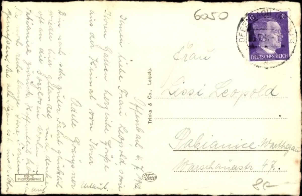 Zustand, siehe Scan, gelaufen, 1942 - ca 14 cm X 9 cm