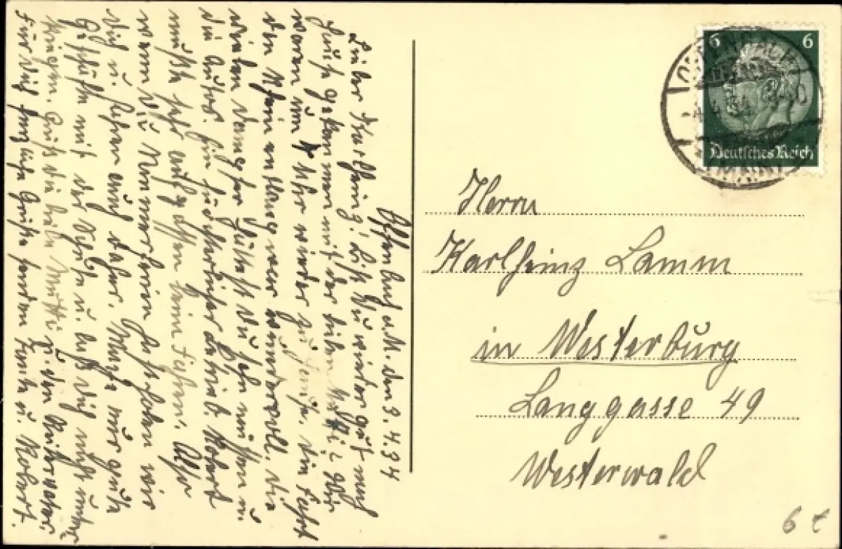 gelaufen 1934, Einriss links, sonst guter Zustand
