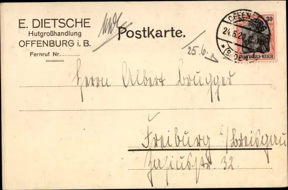 Ak Offenburg in Baden Schwarzwald, E. Dietsche, Hutgroßhandlung
