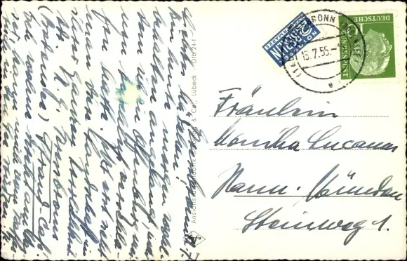 Zustand, siehe Scan, gelaufen, 1955 - ca 14 cm X 9 cm