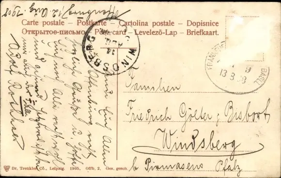 Zustand, siehe Scan, gelaufen, 1908 - ca 14 cm X 9 cm