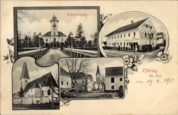 Ak Oftering in Oberösterreich, Schloss Freiling, Kirche, Gasthaus
