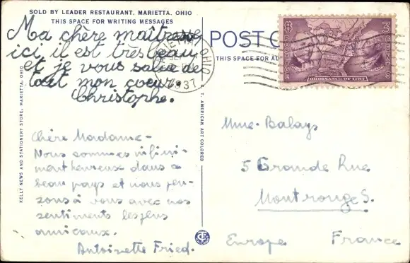 Zustand, siehe Scan, gelaufen, 1937 - ca 14 cm X 9 cm