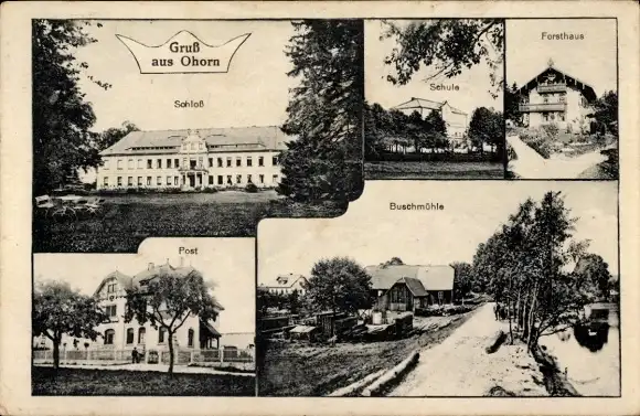 Ak Ohorn Sachsen, Buschmühle, Post, Forsthaus u. Schule