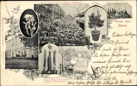 Ak Ohorn in Sachsen, Schloss, Cacteen-Sammlung, Gasthof König Albert Eiche, Gartenansicht