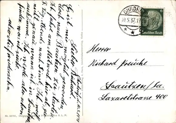 Zustand, siehe Scan, gelaufen, 1937 - ca 15 cm X 10 cm