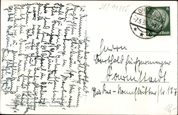 Zustand, siehe Scan, gelaufen, 1938 - ca 14 cm X 9 cm