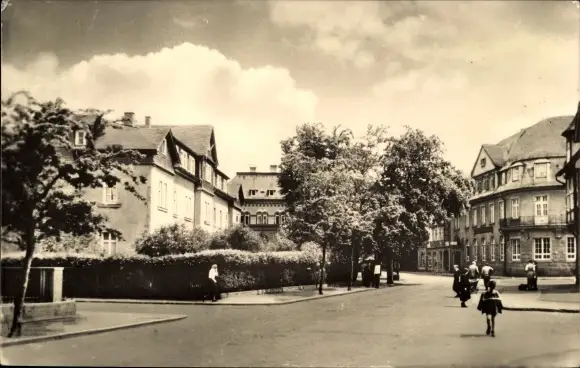 Ak Ohrdruf in Thüringen, Friedensstraße mit Krankenhaus, Passanten