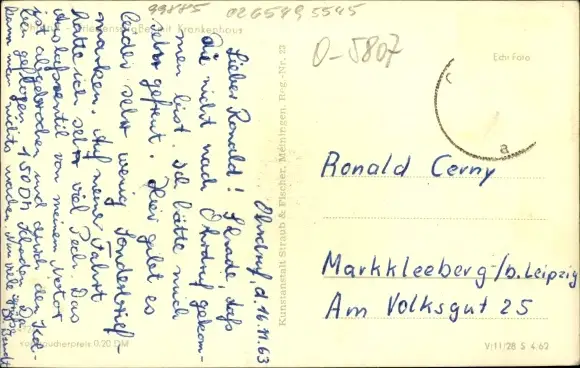 Zustand, siehe Scan, gelaufen, 1963 - ca 14 cm X 9 cm
