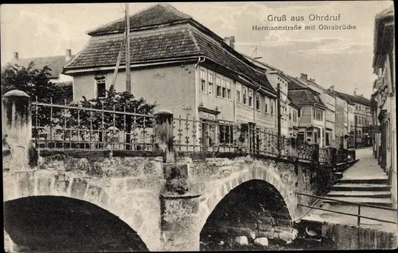 Ak Ohrdruf in Thüringen, Hermannstraße mit Ohrabrücke
