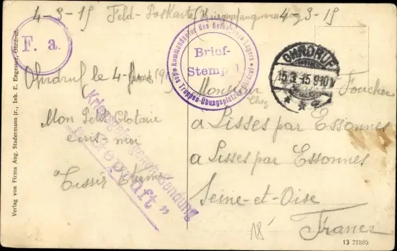 Zustand, siehe Scan, gelaufen, 1915 - ca 14 cm X 9 cm
