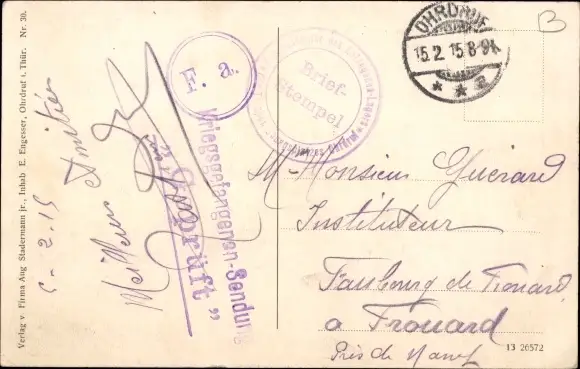 Zustand, siehe Scan, gelaufen, 1915 - ca 14 cm X 9 cm