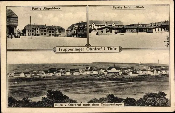 Ak Ohrdruf in Thüringen, Truppenübungsplatz, Truppenlager, Jägerblock, Infanterie Block