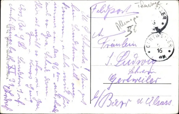 Zustand, siehe Scan, gelaufen, 1916 - ca 14 cm X 9 cm