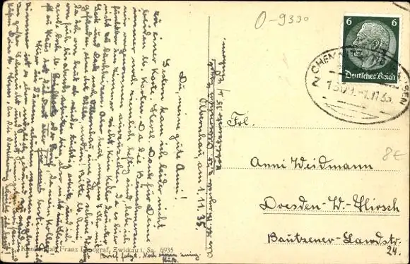 Zustand, siehe Scan, gelaufen, 1935 - ca 3 cm X 5 cm