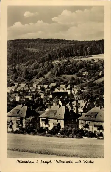 Ak Olbernhau im Erzgebirge, Teilansicht, Kirche