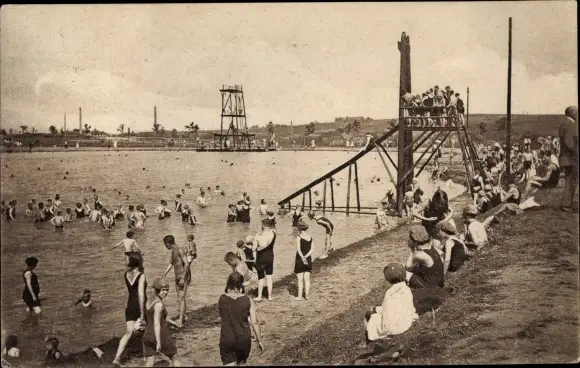 Ansichtskarte, Postkarte, Badeanstalt, Schwimmbad, Freibad, Strandbad, Volksbad