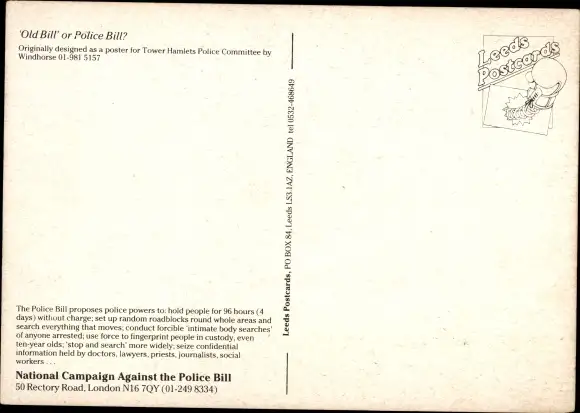 Ak Old Bill oder Police Bill, nationale Kampagne gegen das Polizeigesetz