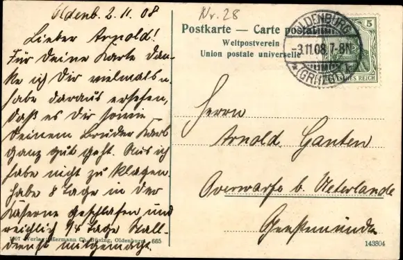 Zustand, siehe Scan, gelaufen, 1908 - ca 14 cm X 9 cm