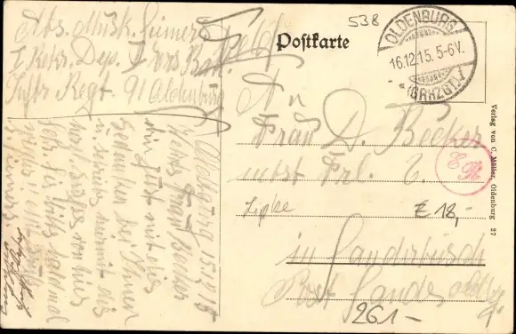 Zustand, siehe Scan, gelaufen, 1915 - ca 14 cm X 9 cm