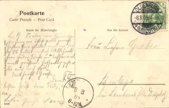Zustand, siehe Scan, gelaufen, 1905 - ca 14 cm X 9 cm