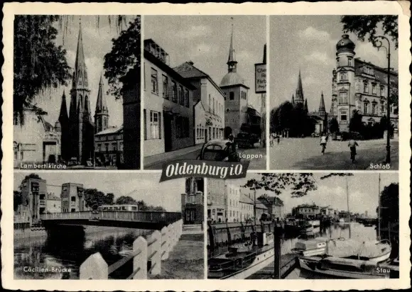 Ak Oldenburg in Oldenburg, Lambertikirche, Lappan, Schloss, Cäcilienbrücke