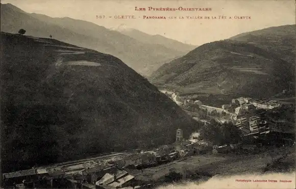 Ak Olette Pyrénées-Orientales, Panorama sur la Vallee de la Tet